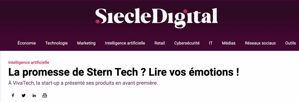 The article published on Siècle Digital presents Stern Tech as a company that aims to “read your emotions” using its artificial intelligence technologies.